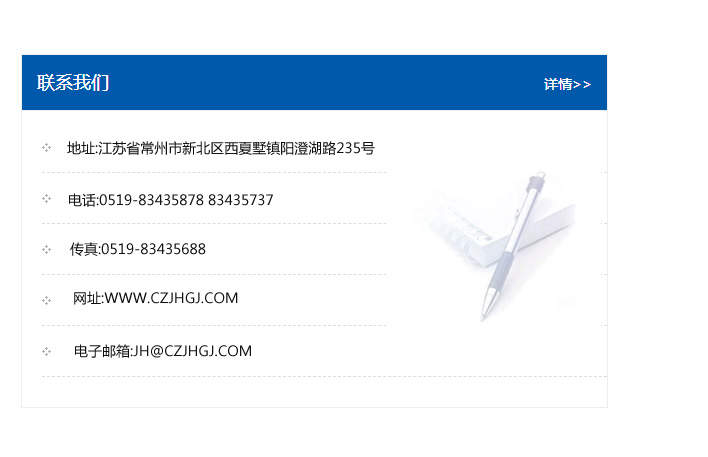 地址:常州市新北區友邦商務大廈1幢16、17層  電話:0519-85101652  傳真:0519-85112595  郵編:213022  網址:www.cz-jiayue_cn.scdelong.com  郵箱:xiajifengaa@163.com